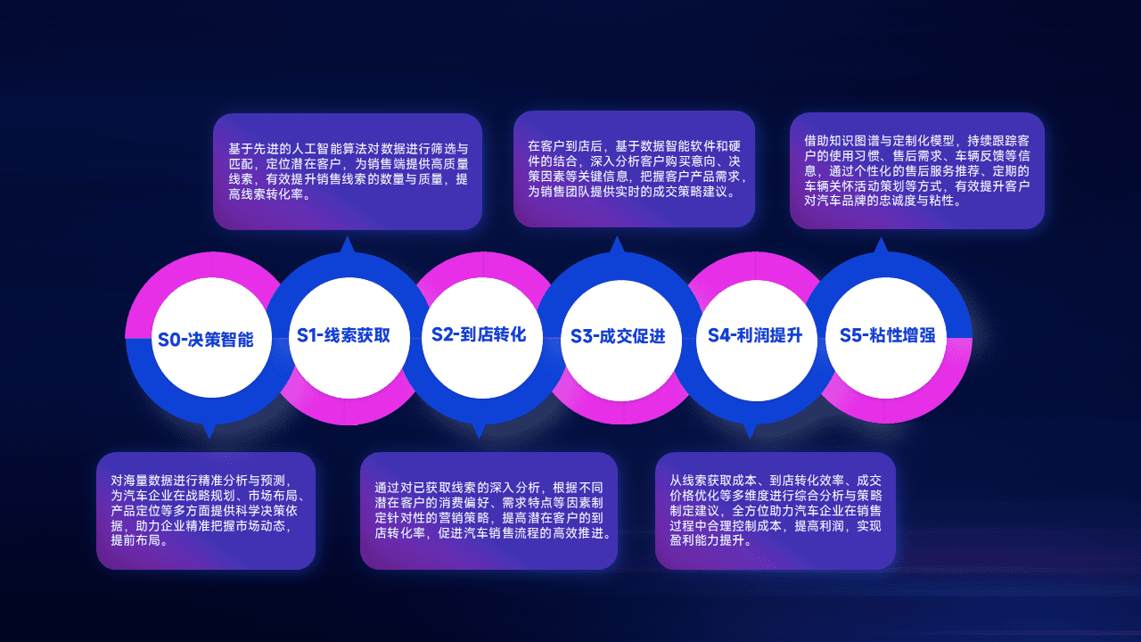 通过拓宽潜在客户来源、、优化线索分配并提高到店转化率,,,以增强销售效率。。同时,,,利用线索数据不断优化分析模型,,有效提升转化率,,,,扩大营销影响力。。。。